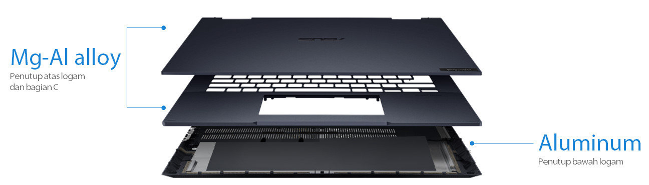 Untuk menciptakan bentuk tutup melengkung 3D yang sempurna dan papan ketik kompleks dari ExpertBook B7 Flip, proses penggilingan CNC (Computer Numerical Control/Kontrol Numerik Komputer) presisi tinggi digunakan untuk membentuk paduan magnesium-aluminium padat. Ini mengurangi rongga internal yang tidak perlu, membantu membuat seluruh sasis lebih keras dan lebih kuat daripada yang mungkin dilakukan dengan menggunakan metode stamping logam tradisional.